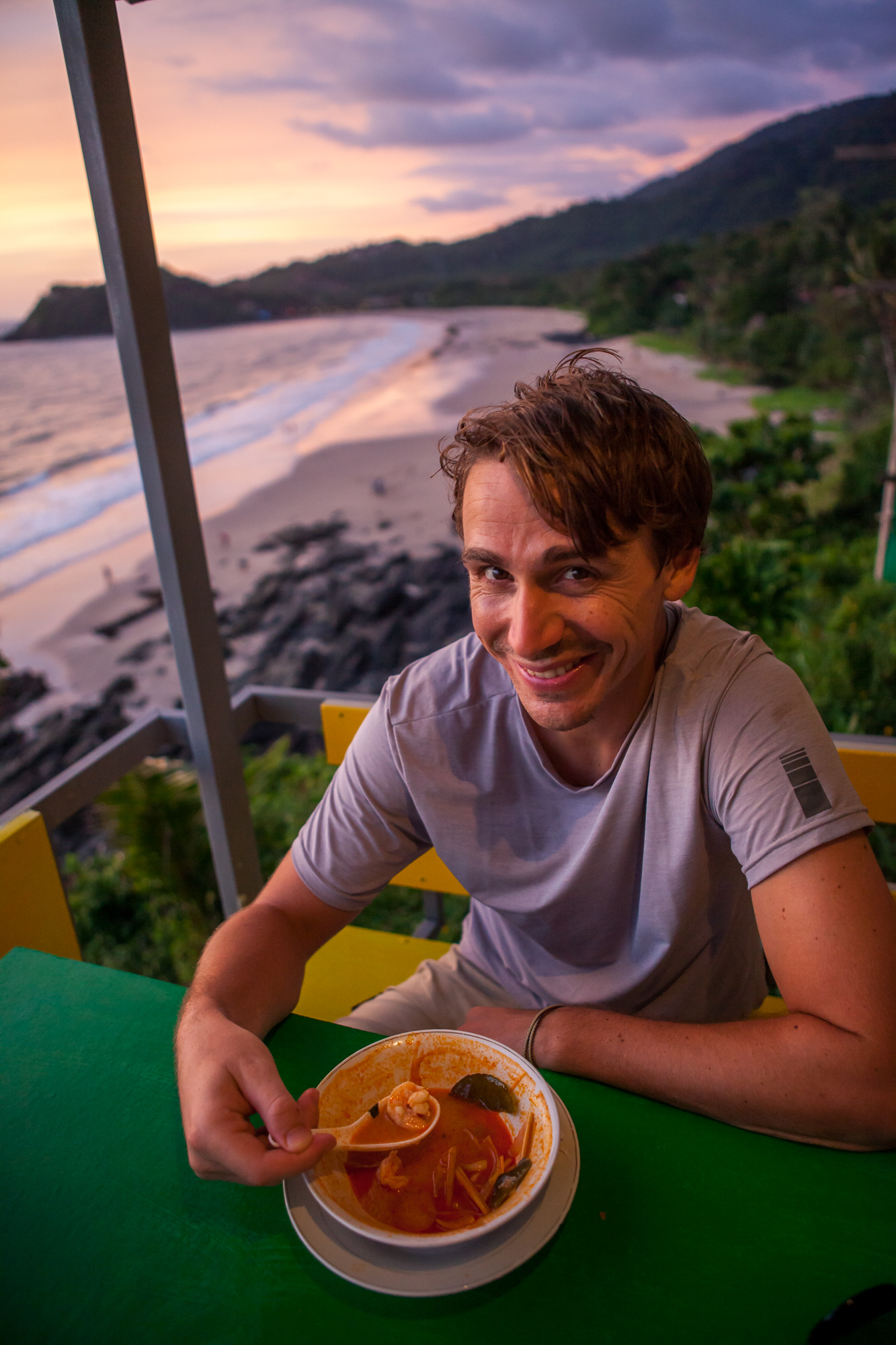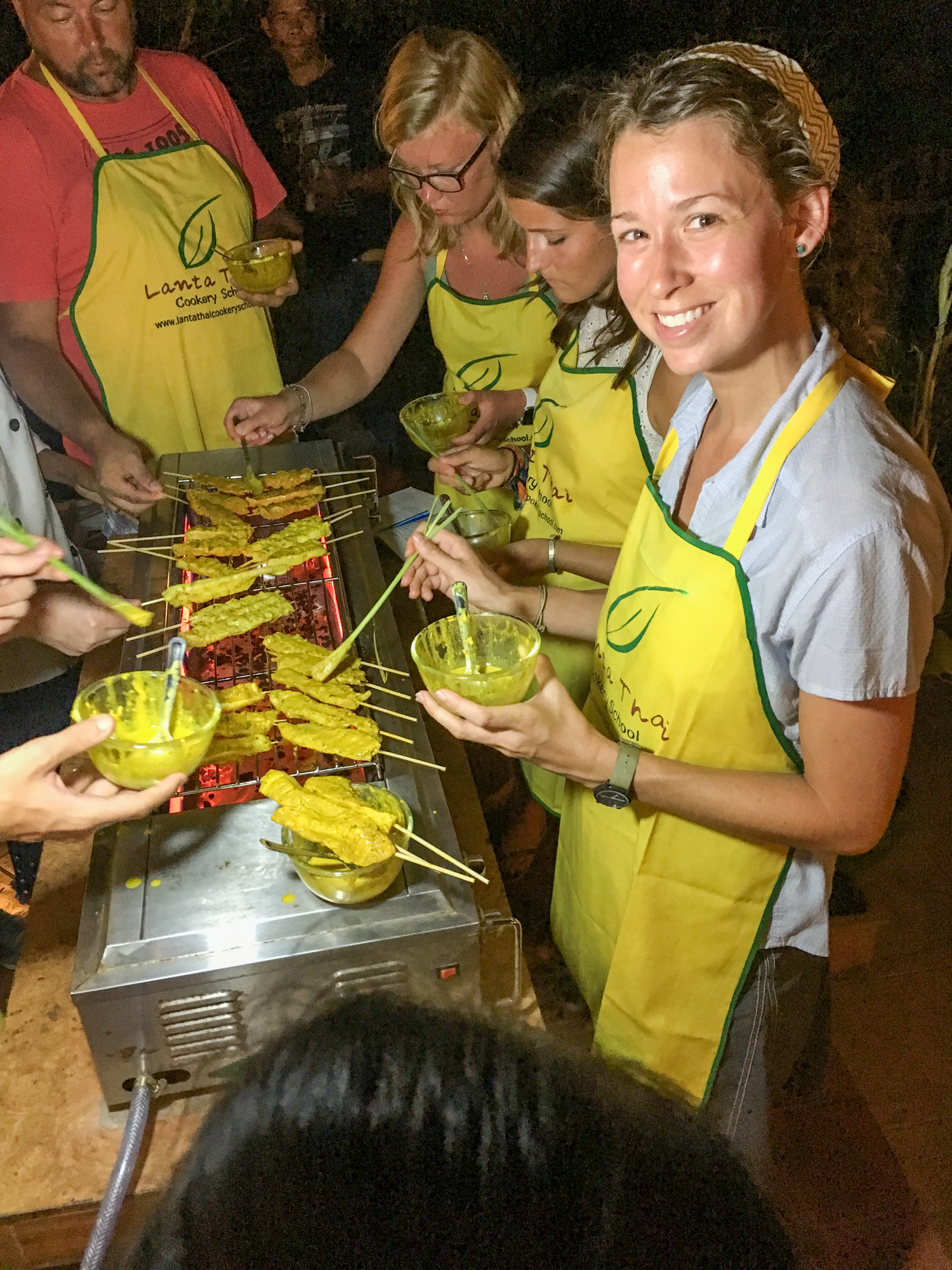 By day, we explored sights on a scooter — beach hopping to find the best swimming spots, hiking through a national park where we saw Komodo dragons and angry monkeys and wandering Lanta Old Town’s quaint downtown riverfront lined with shops and cafes frying up Thai pancakes. We were already huge fans of Thai cuisine so we decided to take a cooking class to learn how to make four Thai dishes from scratch, and we can’t wait to try out the recipes on our own!